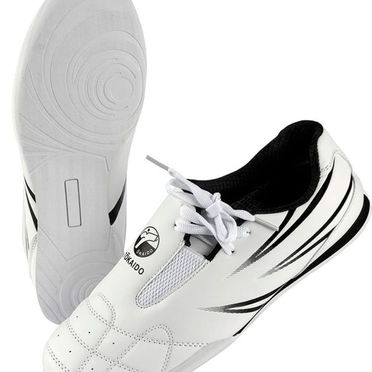 Kampsportsskoen fra Tokaido er en letvægts sko til brug indendørs. Skoen er lavet af slidstærkt syntetisk læder. Tynd, skridsikker gummisål med profil er designet til at være effektiv på måtter. Kombinationen af en hævet hæl, elastiske indlæg og ekstra snøring garanterer en sikker pasform.